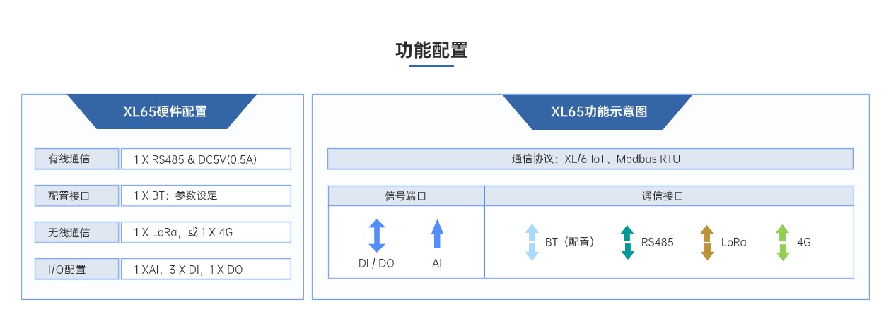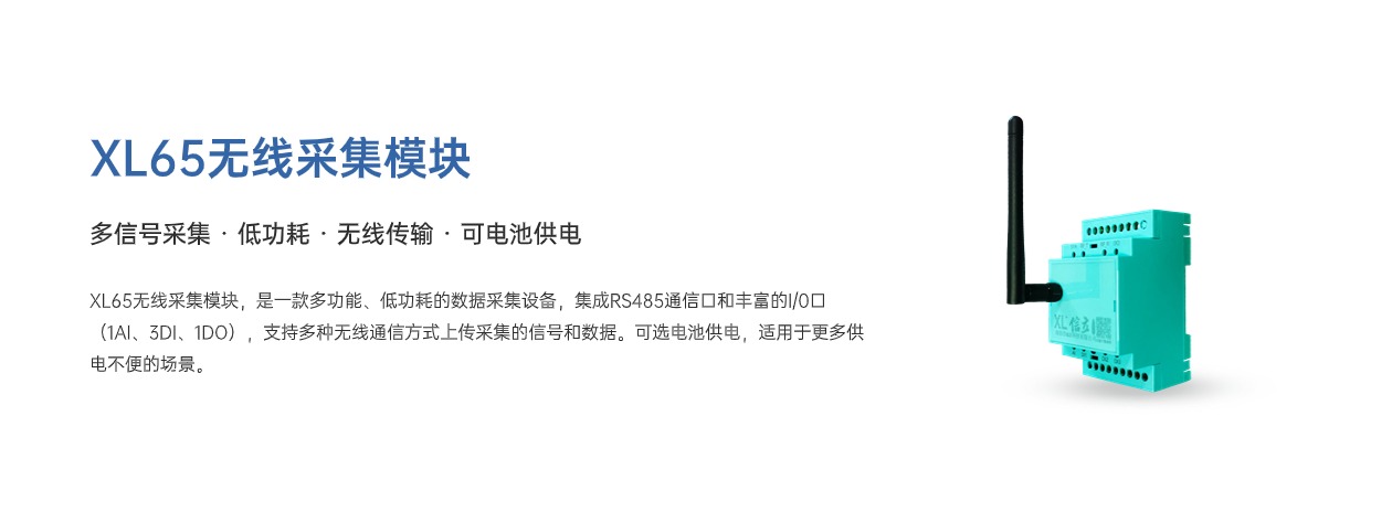 XL65采集模塊,用于監(jiān)測點分散、數(shù)量少、供電不方便的場景。電池供電,變位、超限觸發(fā)功能,更適用于變送儀表信號、開關(guān)接點信號采集。