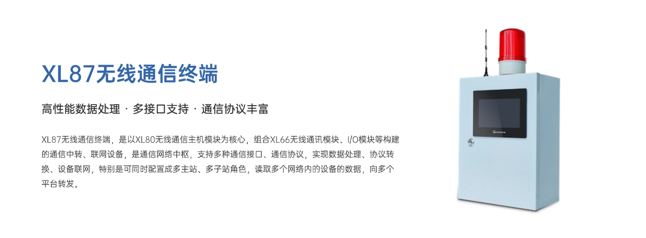 XL87無(wú)線(xiàn)通信終端,是以XL80無(wú)線(xiàn)通信主機(jī)模塊為核心,組合XL66無(wú)線(xiàn)通訊模塊、I/O模塊等構(gòu)建的通信中轉(zhuǎn)、聯(lián)網(wǎng)設(shè)備,是通信網(wǎng)絡(luò)中樞,支持多種通信接口、通信協(xié)議,實(shí)現(xiàn)設(shè)備聯(lián)網(wǎng),特別是可同時(shí)配置成多主站、多子站角色,讀取多個(gè)網(wǎng)絡(luò)內(nèi)的設(shè)備的數(shù)據(jù),向多個(gè)平臺(tái)轉(zhuǎn)發(fā)。