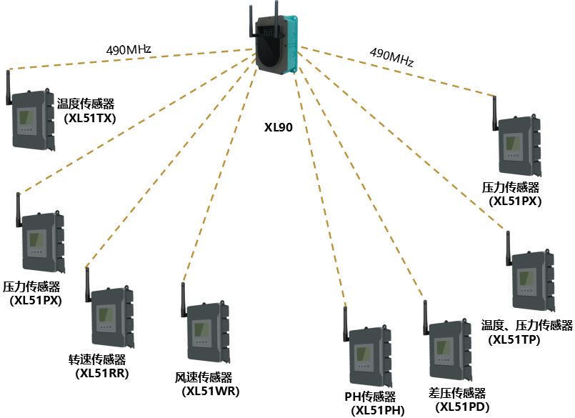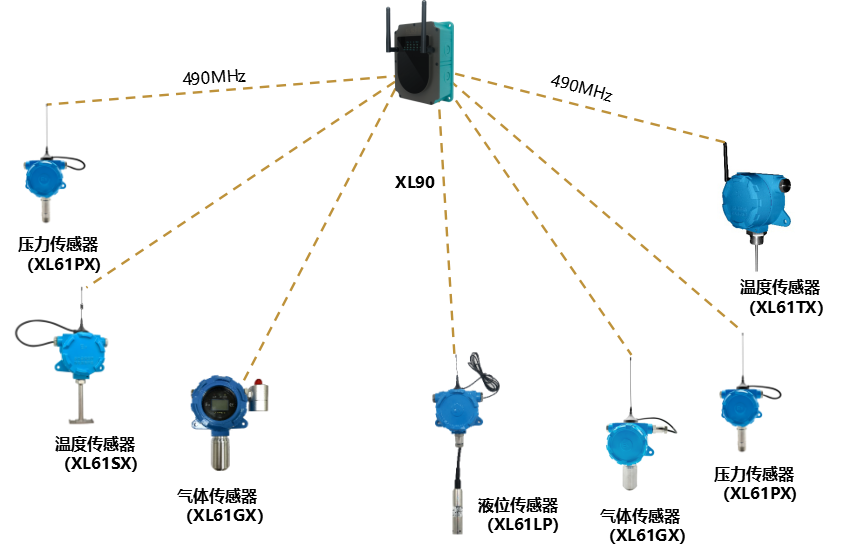 1臺(tái)XL90物聯(lián)網(wǎng)關(guān),構(gòu)建兩個(gè)獨(dú)立的LoRa通訊網(wǎng)絡(luò),可接入64(理論上不受限制)臺(tái)智能傳感器