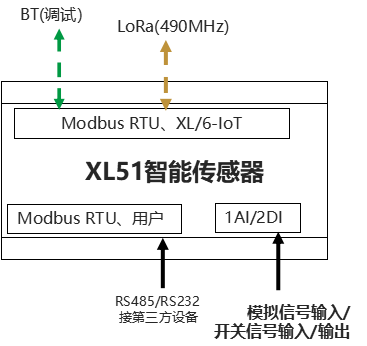 XL51智能傳感器,設(shè)計(jì)有模擬信號(hào)、開(kāi)關(guān)信號(hào)及RS485接口,可接入多種類型、功能的傳感器探頭