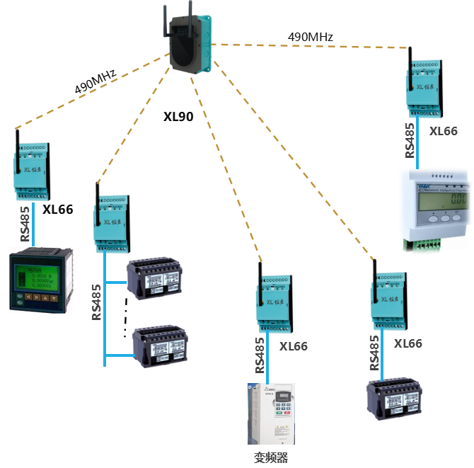 每個(gè)監(jiān)測(cè)點(diǎn),配置1臺(tái)XL66智能轉(zhuǎn)換器,從通訊接口,讀取電力監(jiān)控表的數(shù)據(jù),無(wú)線方式上傳至XL90物聯(lián)網(wǎng)關(guān)