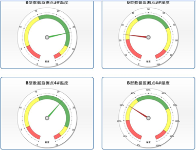 (6)監(jiān)測(cè)軟件采用工業(yè)組態(tài)開發(fā),具有性能穩(wěn)定、功能豐富、組態(tài)靈活,擴(kuò)展方便等諸多優(yōu)點(diǎn)。如可以根據(jù)傳感器分布提供軟件界面,在界面上區(qū)分傳感器位置、布局、每個(gè)監(jiān)測(cè)點(diǎn)位置等按照實(shí)際布局安排,確保監(jiān)測(cè)界面的生動(dòng)形象。