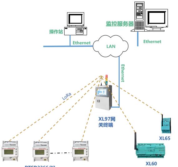 XL60無線上傳數(shù)據(jù)至現(xiàn)場監(jiān)控終端;或上傳至XL90物聯(lián)網(wǎng)關(guān)。